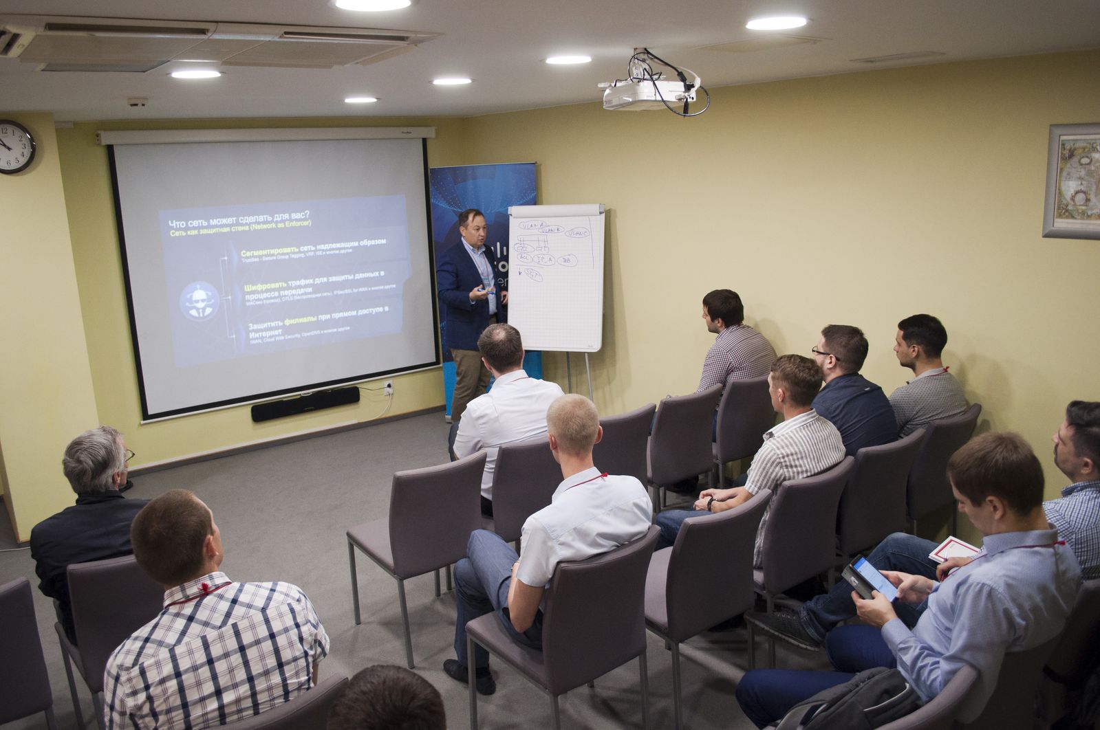 В бизнес отеле «Евразия» спикер, технический специалист компании Cisco рассказал нашим заказчикам, как они, с помощью своих проверенных решений предлагают обеспечивать информационную безопасность любого бизнеса, как небольшого, так и крупного.